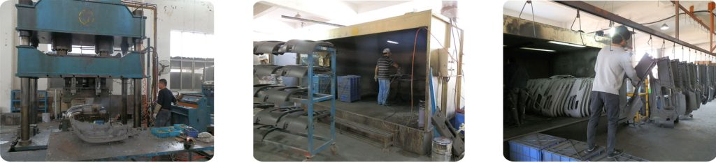 1.1 Put the SMC material into the mould in the high hydraulic machine for pressure, after the setting time,take out of the semi-finished products, and take out the screw from the products.